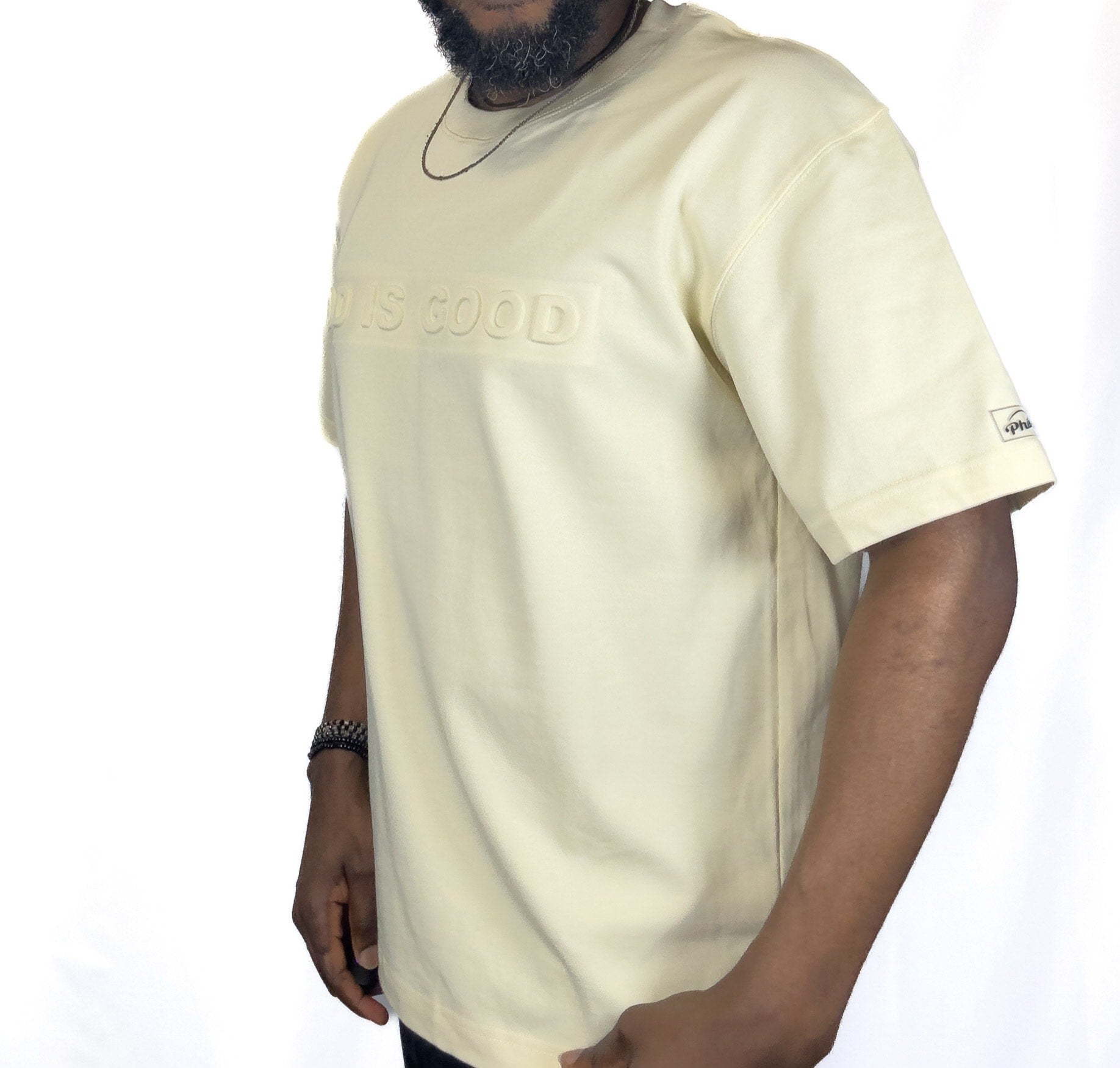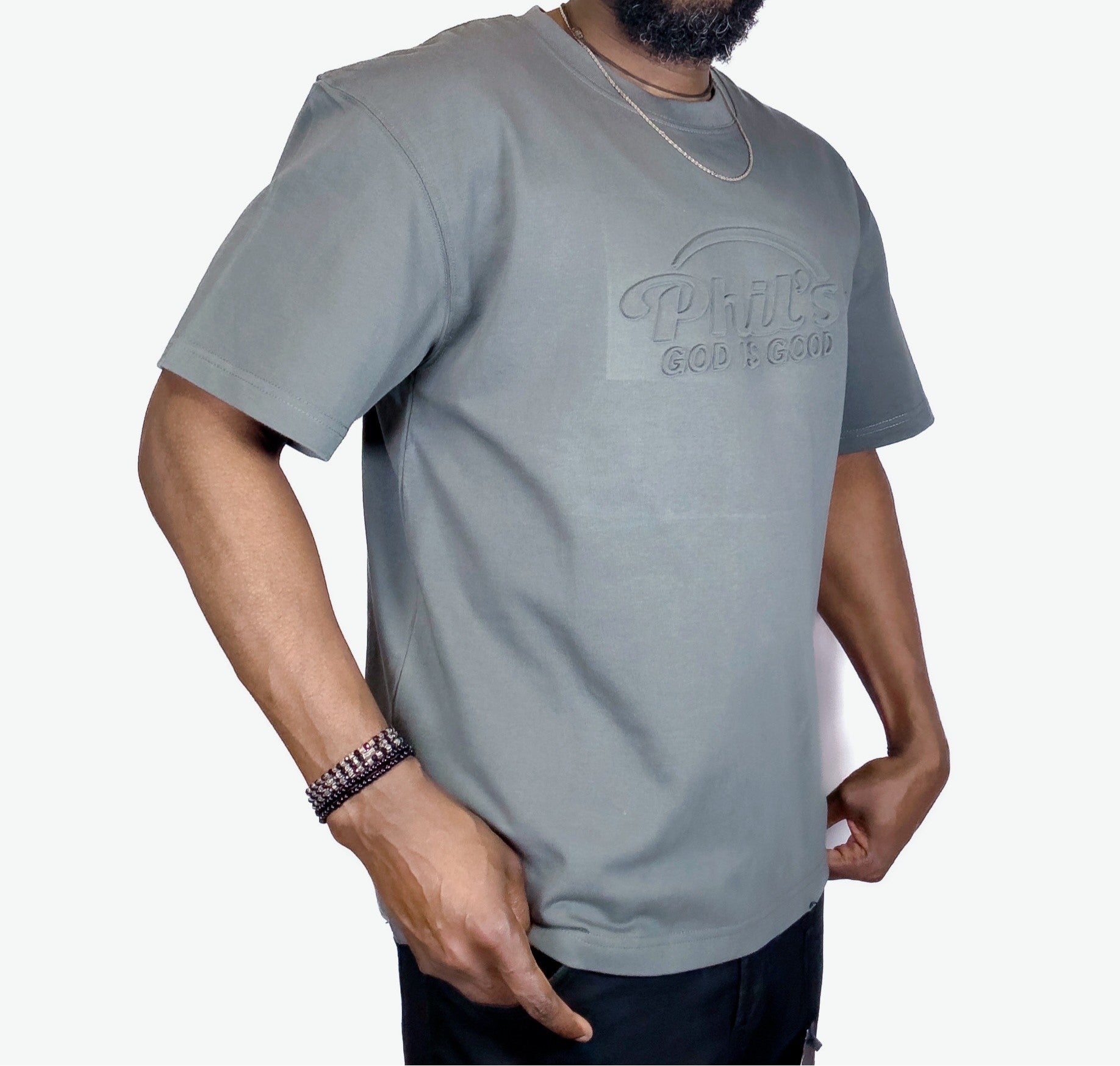The Phils embossed ( DOD IS GOOD) T-shirt offers premium comfort and timeless style, crafted from 100% ultra-soft cotton with a weighty 300 GSM fabric. This tee is designed for durability and a structured yet relaxed fit, making it perfect for everyday wear.